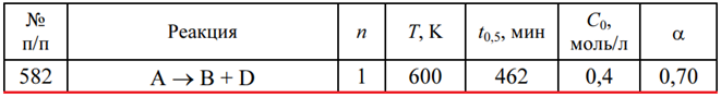 Задача 582 - для данной химической реакции при за-данных температуре Т, порядке реакции n, начальных концентрациях реагентов С0, времени полупревращения t0,5 определите время tα, за которое прореагирует указанная доля исходного вещества α.