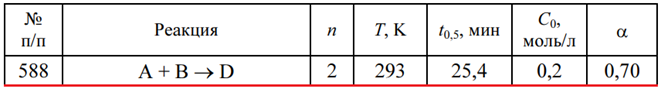 Задача 588 - для данной химической реакции при за-данных температуре Т, порядке реакции n, начальных концентрациях реагентов С0, времени полупревращения t0,5 определите время tα, за которое прореагирует указанная доля исходного вещества α.