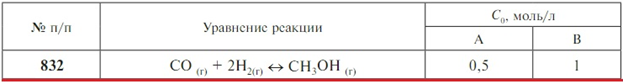 Главная » Учебные материалы » Химия » Решения задач » Несколько классов/семестров » Номер 832 » Задача 832 - Для данной гомогенной реакции А + В ↔ С + D определите температуру, при которой наступает равновесие. Напишите выражение константы равновесия. Рассчитайте равновесный состав системы при этой температуре, если известны начальные концентра