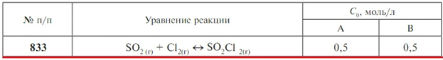 Главная » Учебные материалы » Химия » Решения задач » Несколько классов/семестров » Номер 833 » Задача 833 - Для данной гомогенной реакции А + В ↔ С + D определите температуру, при которой наступает равновесие. Напишите выражение константы равновесия. Рассчитайте равновесный состав системы при этой температуре, если известны начальные концентра