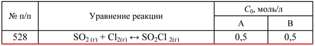 Задача 528 - для данной гомогенной реакции А + В ↔ С + D определите температуру, при которой наступает равновесие. Напишите выражение константы равновесия. Рассчитайте равновесный состав системы при этой температуре, если известны начальные концентра