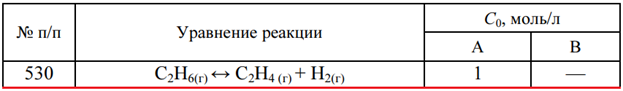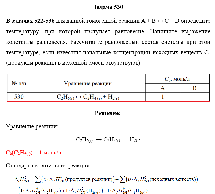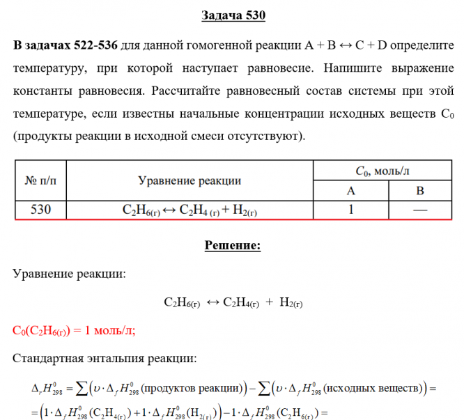 Задача 530 - для данной гомогенной реакции А + В ↔ С + D определите температуру, при которой наступает равновесие. Напишите выражение константы равновесия. Рассчитайте равновесный состав системы при этой температуре, если известны начальные концентра