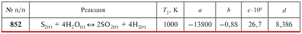Главная » Учебные материалы » Химия » Решения задач » Несколько классов/семестров » Номер 852 » Задача 852 - Используя уравнение температурной зависимости константы равновесия lgKp = a/T + blgT + cT + d, рассчитайте константу равновесия Kp при температуре Т1 = 298 К и при заданной температуре Т2. Не производя вычислений, укажите, в каком направ