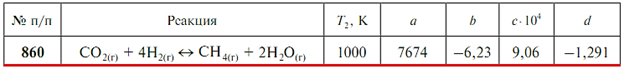 Главная » Учебные материалы » Химия » Решения задач » Несколько классов/семестров » Номер 860 » Задача 860 - Используя уравнение температурной зависимости константы равновесия lgKp = a/T + blgT + cT + d, рассчитайте константу равновесия Kp при температуре Т1 = 298 К и при заданной температуре Т2. Не производя вычислений, укажите, в каком направ