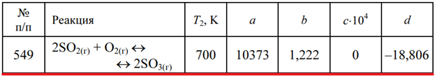 Задача 549 - используя уравнение температурной зависимости константы равновесия lgKp = a/T + blgT + cT + d, рассчитайте константу равновесия Kр при температуре Т1 = 298 K и при заданной температуре Т2. Укажите, в каком направлении смещается равновеси