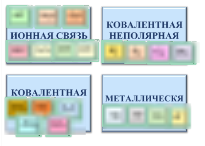 Определите тип химической связи для каждого вещества. Для этого, перенесите вещество в прямоугольник по типу соответствия его химической связи.