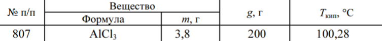 Задача 807: В задачах 800-809 определите степень диссоциации электролита в водном растворе (m — масса растворенного вещества; g — масса растворителя; Т кип — температура кипения раствора). Эбулиоскопическая постоянная воды 0,52 K·моль -1 ·л.