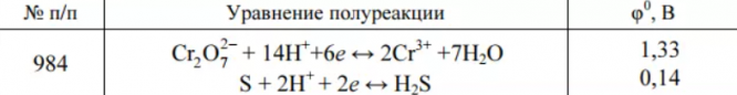 Задача 984: В задачах 967-988 по приведенным уравнениям полуреакций и значениям стандартных потенциалов составьте полное ионно-молекулярное уравнение окислительно-восстановительной реакции, самопроизвольно протекающей в редоксэлементе. Рассчитайте ЭД