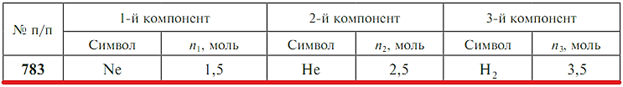 Задачи 767-785 (табл. 2.7). Рассчитайте энтропию каждого компонента в газовой смеси, подчиняющейся законам идеальных газов, и энтропию смеси. Укажите, как изменяется энтропия каждого газа в смеси..
