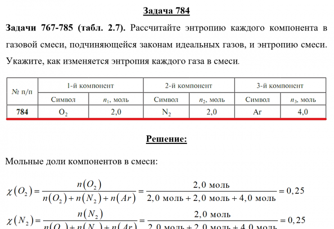 Для студентов по предмету ХимияЗадача 784 - Рассчитайте энтропию каждого компонента в газовой смеси, подчиняющейся законам идеальных газов, и энтропию смеси. Укажите, как изменяетсяЗадача 784 - Рассчитайте энтропию каждого компонента в газовой смеси, подчиняющейся законам идеальных газов, и энтропию смеси. Укажите, как изменяется