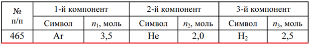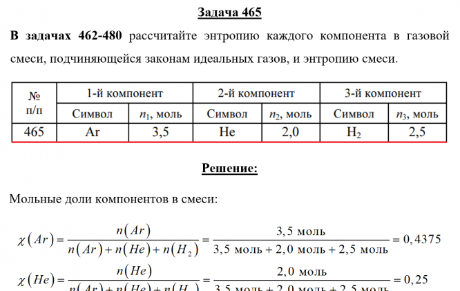 Задача 465 - рассчитайте энтропию каждого компонента в газовой смеси, подчиняющейся законам идеальных газов, и энтропию смеси.