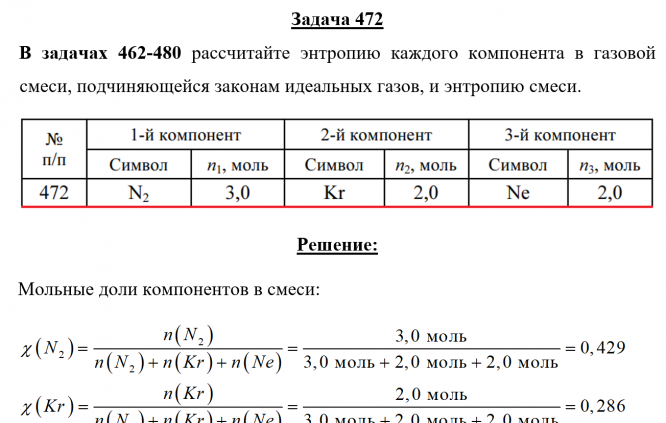 Задача 472 - рассчитайте энтропию каждого компонента в газовой смеси, подчиняющейся законам идеальных газов, и энтропию смеси.