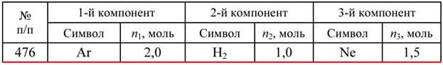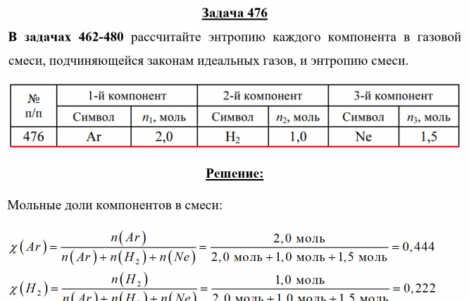Задача 476 - рассчитайте энтропию каждого компонента в газовой смеси, подчиняющейся законам идеальных газов, и энтропию смеси.