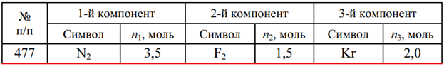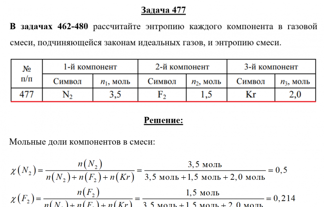 Задача 477 - рассчитайте энтропию каждого компонента в газовой смеси, подчиняющейся законам идеальных газов, и энтропию смеси.