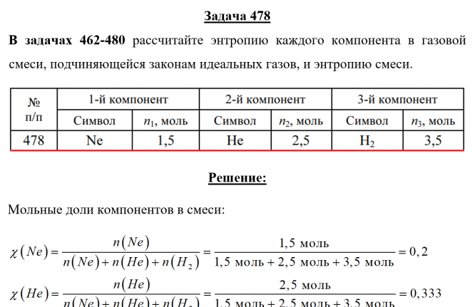 Главная » Учебные материалы » Химия » Решения задач » Несколько классов/семестров » Номер 478 » Задача 478 - рассчитайте энтропию каждого компонента в газовой смеси, подчиняющейся законам идеальных газов, и энтропию смеси.