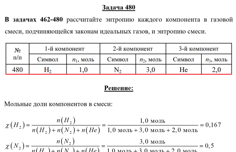 Для студентов по предмету ХимияЗадача 480 - рассчитайте энтропию каждого компонента в газовой смеси, подчиняющейся законам идеальных газов, и энтропию смеси.Задача 480 - рассчитайте энтропию каждого компонента в газовой смеси, подчиняющейся законам идеальных газов, и энтропию смеси.