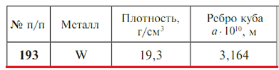 Задача 193 - Определите, используя приведенные ниже экспериментальные данные: а) структурный тип кристаллической решетки, в которой кристаллизуется данный металл (гранецентрированная кубическая, объемно центрированная кубическая или типа алмаза); б)