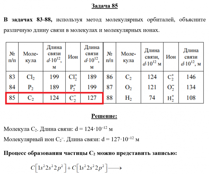 Задача 85: Задача 85 - используя метод молекулярных орбиталей, объясните различную длину связи в молекулах и молекулярных ионах.