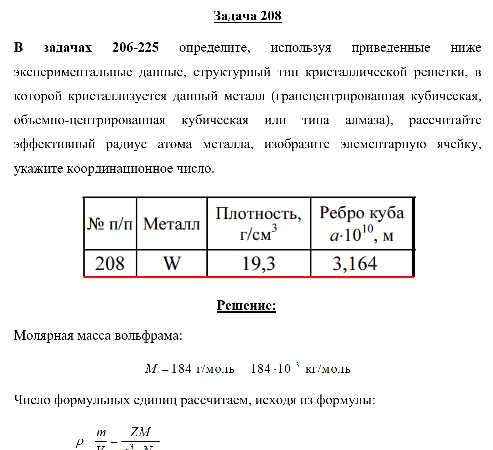 Для студентов по предмету ХимияЗадача 208 - определите, используя приведенные ниже экспериментальные данные, структурный тип кристаллической решетки, в которой кристаллизуется данныЗадача 208 - определите, используя приведенные ниже экспериментальные данные, структурный тип кристаллической решетки, в которой кристаллизуется данны