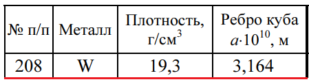 Задача 208 - определите, используя приведенные ниже экспериментальные данные, структурный тип кристаллической решетки, в которой кристаллизуется данный металл (гранецентрированная кубическая, объемно-центрированная кубическая или типа алмаза), рассчи