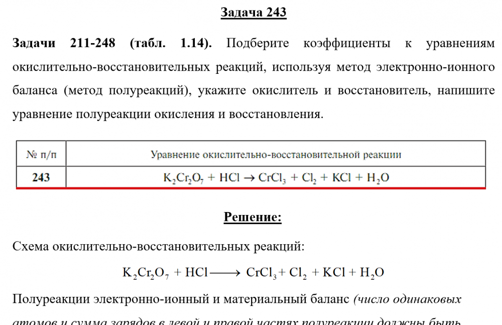 Для студентов по предмету ХимияЗадача 243 - Подберите коэффициенты к уравнениям окислительно-восстановительных реакций, используя метод электронно-ионного баланса (метод полуреакцийЗадача 243 - Подберите коэффициенты к уравнениям окислительно-восстановительных реакций, используя метод электронно-ионного баланса (метод полуреакций