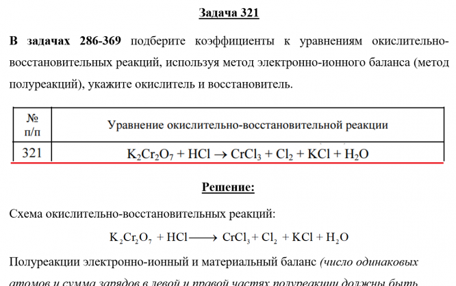 Задача 321 - подберите коэффициенты к уравнениям окислительно-восстановительных реакций, используя метод электронно-ионного баланса (метод полуреакций), укажите окислитель и восстановитель.