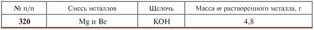 Задачи 315-324 (табл. 1.17). Составьте уравнение реакции, протекающей при помещении смеси металлов в раствор щелочи. Рассчитайте объем выделяющегося газа при взаимодействии металла массой m с раствором щелочи при нормальных условиях.
