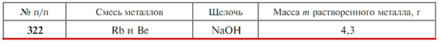 Задачи 315-324 (табл. 1.17). Составьте уравнение реакции, протекающей при помещении смеси металлов в раствор щелочи. Рассчитайте объем выделяющегося газа при взаимодействии металла массой m с раствором щелочи при нормальных условиях.
