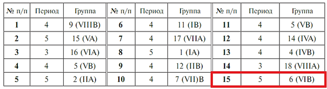 Задача 15 - По заданным координатам атома (период, группа) найдите элемент в Периодической системе, составьте полную электронную формулу атома, изобразите распределение электронов по энергетическим ячейкам, укажите, диамагнитными или парамагнитными с