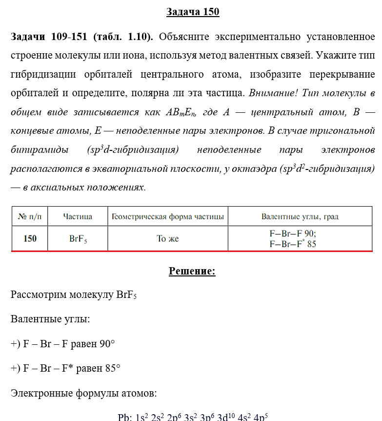 Для студентов по предмету ХимияЗадача 150 - Объясните экспериментально установленное строение молекулы или иона, используя метод валентных связей. Укажите тип гибридизации орбиталейЗадача 150 - Объясните экспериментально установленное строение молекулы или иона, используя метод валентных связей. Укажите тип гибридизации орбиталей