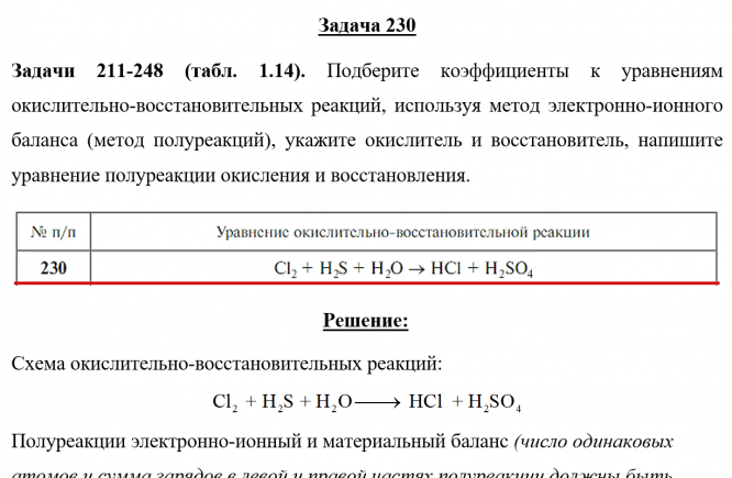Задача 230 - Подберите коэффициенты к уравнениям окислительно-восстановительных реакций, используя метод электронно-ионного баланса (метод полуреакций), укажите окислитель и восстановитель, напишите уравнение полуреакции окисления и восстановления.