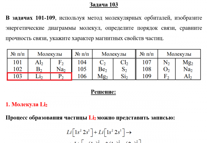 Задача 103 - используя метод молекулярных орбиталей, изобразите энергетические диаграммы молекул, определите порядок связи, сравните прочность связи, укажите характер магнитных свойств частиц.