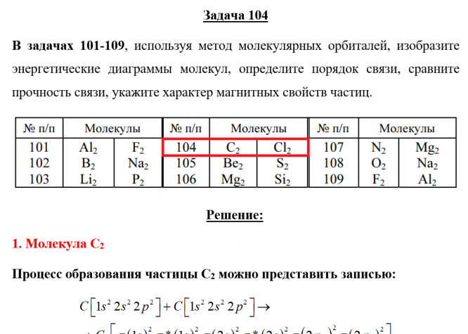 Задача 104 - используя метод молекулярных орбиталей, изобразите энергетические диаграммы молекул, определите порядок связи, сравните прочность связи, укажите характер магнитных свойств частиц.