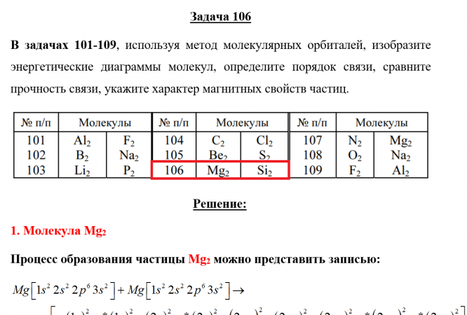 Задача 106 - используя метод молекулярных орбиталей, изобразите энергетические диаграммы молекул, определите порядок связи, сравните прочность связи, укажите характер магнитных свойств частиц.