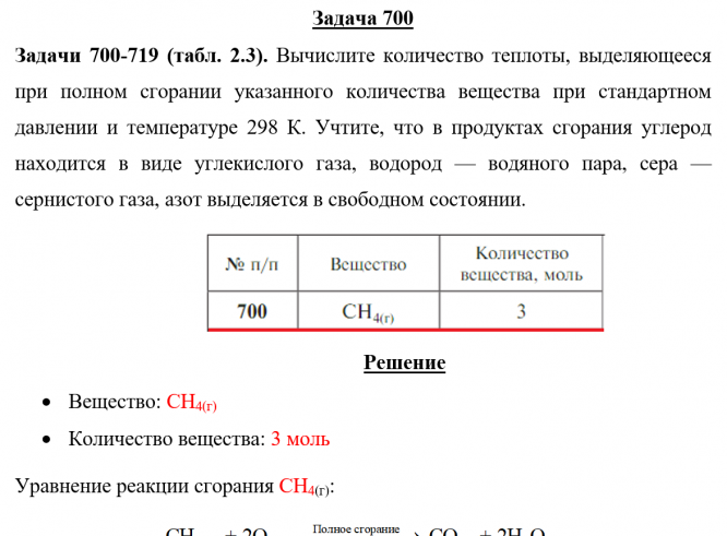 Задача 700 - Вычислите количество теплоты, выделяющееся при полном сгорании указанного количества вещества при стандартном давлении и температуре 298 К. Учтите, что в продуктах сгорания углерод находится в виде углекислого газа, водород — водяного па