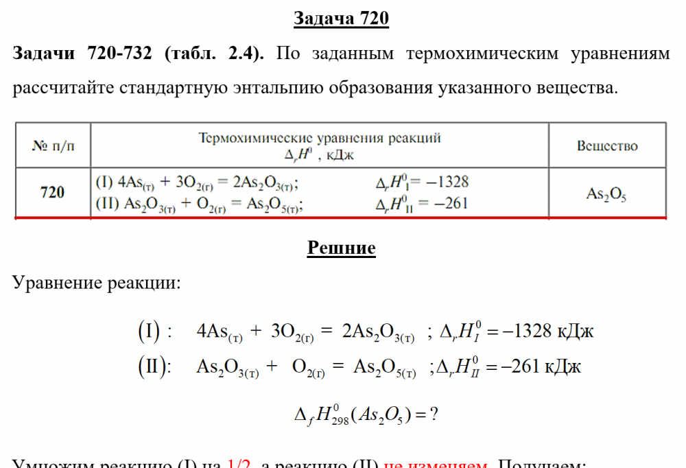 Задача 720: Задача 720 - По заданным термохимическим уравнениям рассчитайте стандартную энтальпию образования указанного вещества.