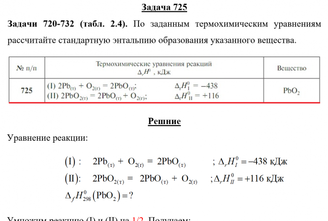 Задача 725: Задача 725 - По заданным термохимическим уравнениям рассчитайте стандартную энтальпию образования указанного вещества.