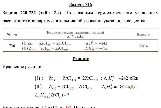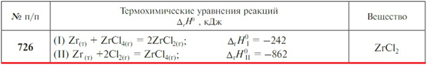 Задача 726: Задача 726 - По заданным термохимическим уравнениям рассчитайте стандартную энтальпию образования указанного вещества.