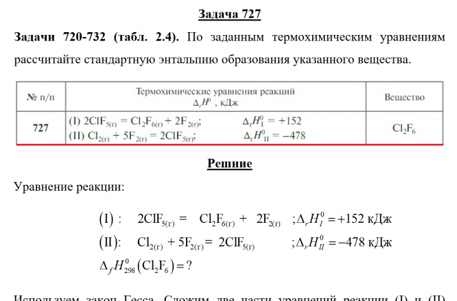 Задача 727: Задача 727 - По заданным термохимическим уравнениям рассчитайте стандартную энтальпию образования указанного вещества.