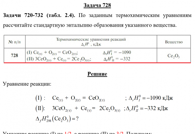 Задача 728: Задача 728 - По заданным термохимическим уравнениям рассчитайте стандартную энтальпию образования указанного вещества.