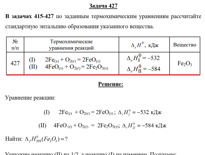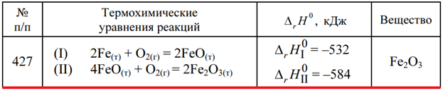 Задача 427: Задача 427 - По заданным термохимическим уравнениям рассчитайте стандартную энтальпию образования указанного вещества.
