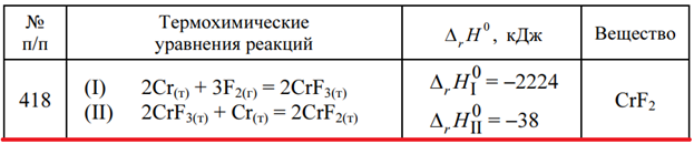 Задача 418: Задача 418 - По заданным термохимическим уравнениям рассчитайте стандартную энтальпию образования указанного вещества.