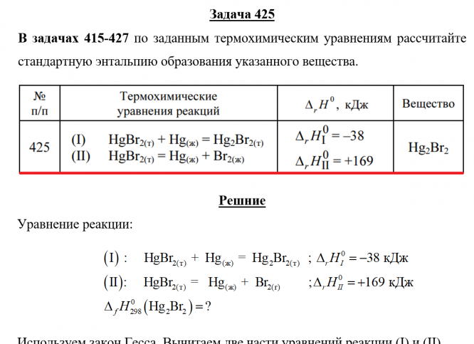 Задача 425: Задача 425 - По заданным термохимическим уравнениям рассчитайте стандартную энтальпию образования указанного вещества.