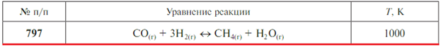 Задачи 786-810 (табл. 2.8). Рассчитайте стандартные энергию Гиббса ΔrG0T и константу равновесия K0 реакции при заданной температуре. Напишите выражение константы равновесия. Укажите, в каком направлении протекает реакция при данной температуре и направление смещения равновесия при изменении температуры. Для обоснования направления смещения равновесия используйте уравнение изобары химической реакции.