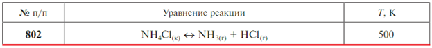 Задачи 786-810 (табл. 2.8). Рассчитайте стандартные энергию Гиббса ΔrG0T и константу равновесия K0 реакции при заданной температуре. Напишите выражение константы равновесия. Укажите, в каком направлении протекает реакция при данной температуре и направление смещения равновесия при изменении температуры. Для обоснования направления смещения равновесия используйте уравнение изобары химической реакции.