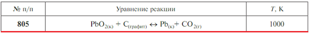 Задачи 786-810 (табл. 2.8). Рассчитайте стандартные энергию Гиббса ΔrG0T и константу равновесия K0 реакции при заданной температуре. Напишите выражение константы равновесия. Укажите, в каком направлении протекает реакция при данной температуре и направление смещения равновесия при изменении температуры. Для обоснования направления смещения равновесия используйте уравнение изобары химической реакции.