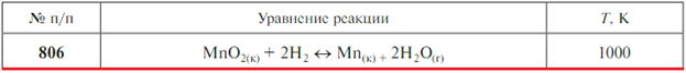 Задачи 786-810 (табл. 2.8). Рассчитайте стандартные энергию Гиббса ΔrG0T и константу равновесия K0 реакции при заданной температуре. Напишите выражение константы равновесия. Укажите, в каком направлении протекает реакция при данной температуре и направление смещения равновесия при изменении температуры. Для обоснования направления смещения равновесия используйте уравнение изобары химической реакции.