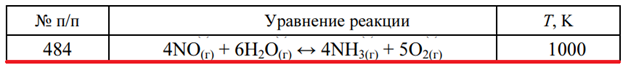 Задача 484 - рассчитайте стандартные энергию Гиббса ΔrG0T и константу равновесия K0 реакции при заданной температуре. Напишите выражение константы равновесия. Укажите, в каком направлении протекает реакция при данной температуре и направление смещени