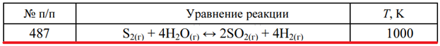 Задача 487 - рассчитайте стандартные энергию Гиббса ΔrG0T и константу равновесия K0 реакции при заданной температуре. Напишите выражение константы равновесия. Укажите, в каком направлении протекает реакция при данной температуре и направление смещени