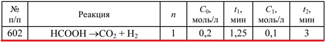 Главная » Учебные материалы » Химия » Решения задач » Несколько классов/семестров » Номер 602 » Задача 602 - для реакции n-го порядка рассчитайте концентрацию исходных веществ С2 через некоторое время t2 от начала реакции, если известно, что при начальных концентрациях реагентов С0 при постоянной температуре за время t1 концентрация исходных ве
